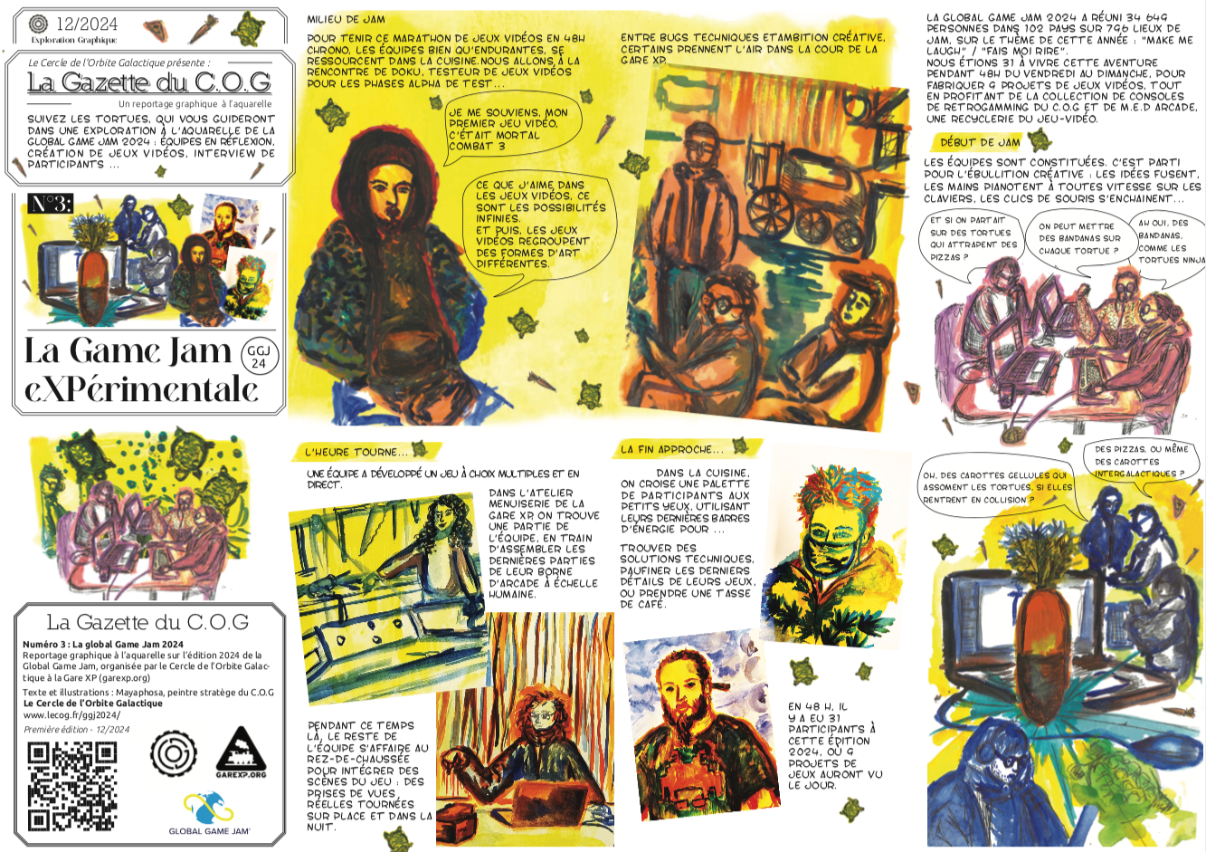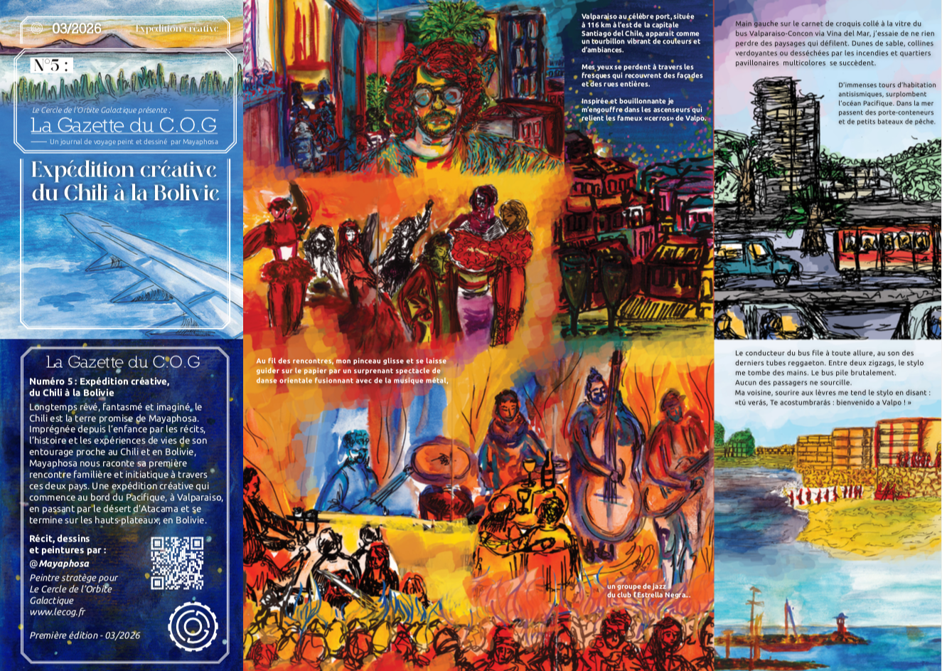 La Gazette du C.O.G, n’est pas un magazine classique, pas un carnet de voyage non plus. Plutôt un mélange des deux, avec du texte, du dessin, et surtout beaucoup de situations vécues. La carte d’un univers à explorer, qui va se déplier sous vos yeux.