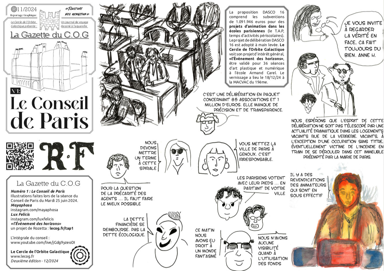 Le premier numéro pose le ton : une séance du Conseil de Paris dessinée sur place. Des répliques lapidaires attrapées au vol, des têtes, des ambiances, des moments un peu absurdes. On comprend vite ce qui se joue, mais par fragments, comme si on y était.